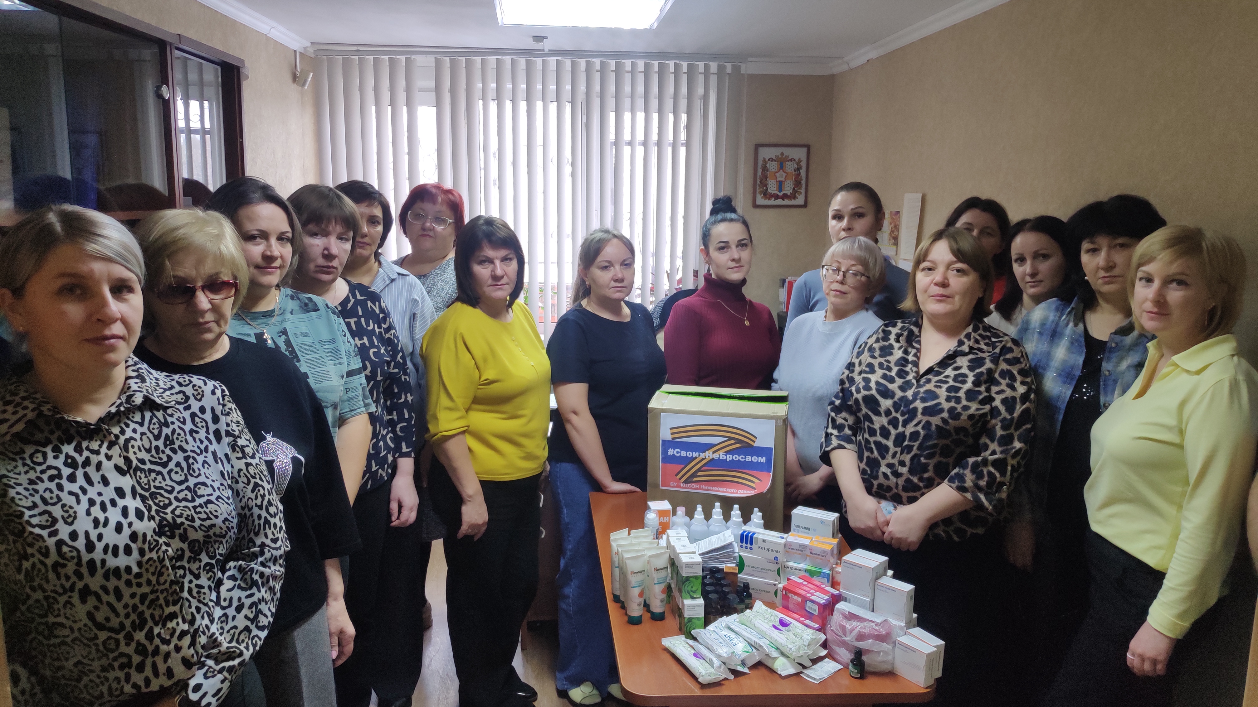 Специалисты бюджетного учреждения Омской области "Комплексный центр социального обслуживания населения Нижнеомского района" приняли участие в данной акции. На собранные специалистами средства, были приобретены медицинские препараты в качестве гуманитарной помощи участникам СВО.