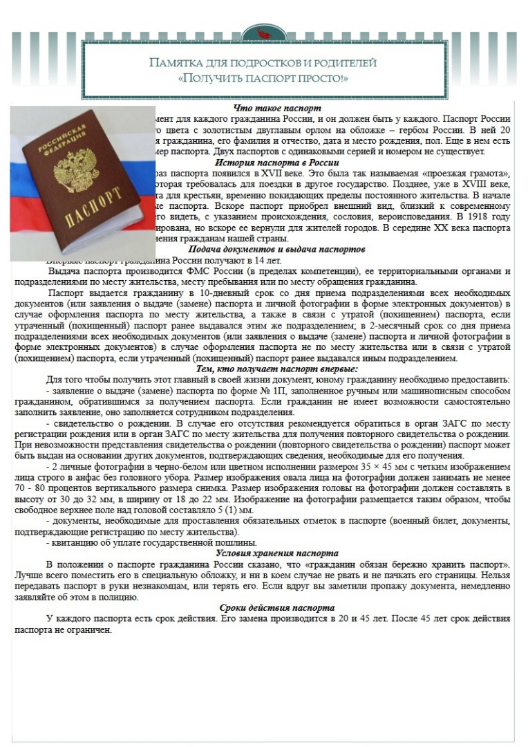 Памятка паспорт